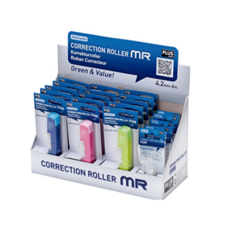 Corrector en Cinta Plus MR 4,2mm x 6m + 5 Blíster de recambio Colores Surtidos Expositor /20 ud.